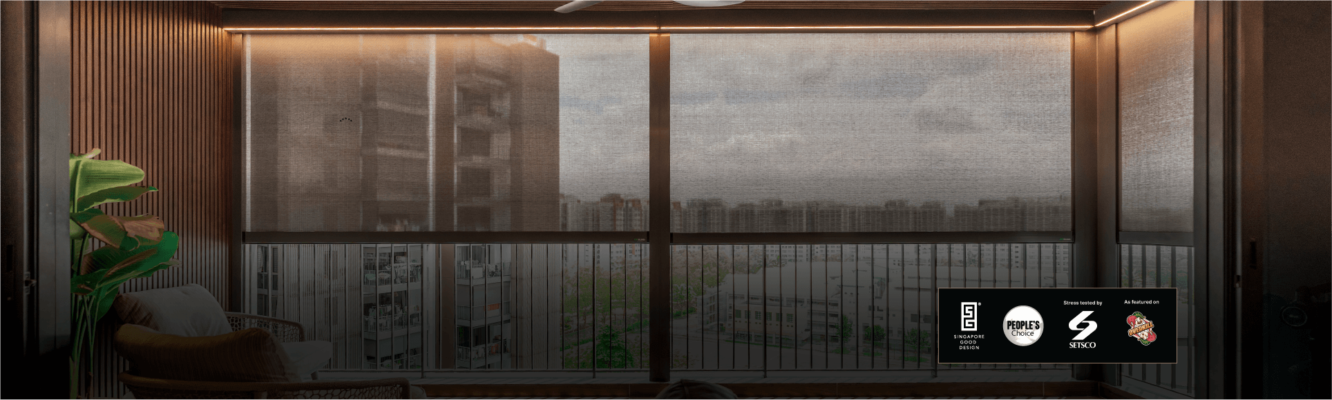 Introducing Singapore’s FIRST ever ZipBlind® with Soft Fade LED light. Don't be constrained by the darkness in your balcony by closed blinds. The in built LED light bar system gives a sophisticated yet modern sentsation during the transition of turning on or off. Provides additional usage of lighting your balcony on top of all the benefits of having zip blinds.